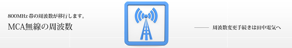 田中電気はこれまで多くのMCA無線機を取り扱っております。現在、進められているMCA無線機の周波数移行についてもお客様のご負担なく、新たな周波数でスムーズに利用できるようサポートいたします。
